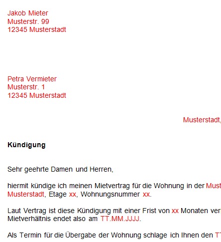 Vorlage kündigung mietvertrag - Tipss und Vorlagen